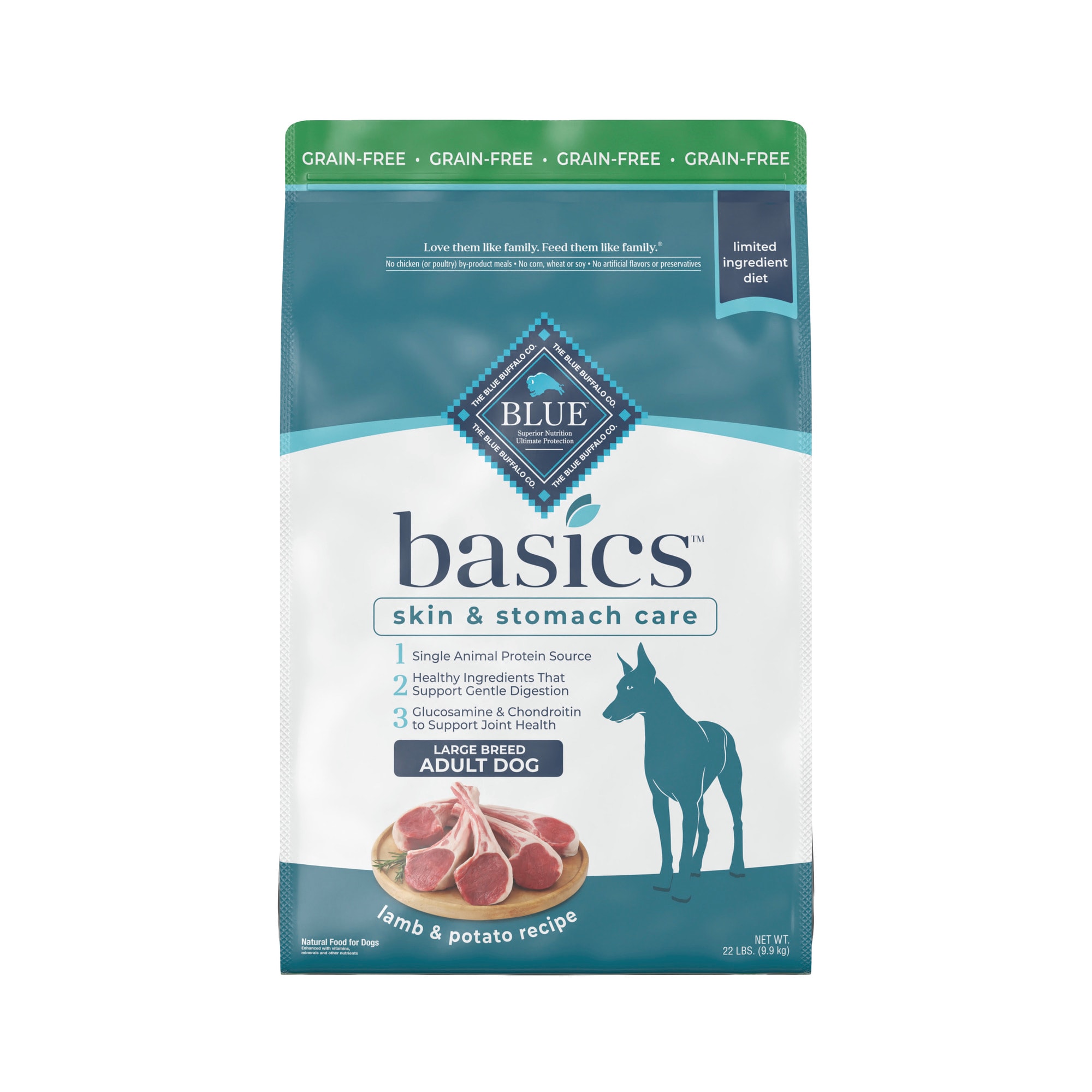 Blue Buffalo Blue Basics Skin Stomach Care Natural Adult Grain Free Lamb Potato Large Breed Dry Dog Food 22 Lbs Petco